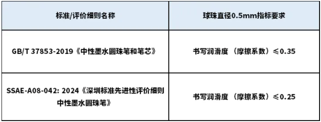 GB/T 37853—2019《中性墨水圆珠笔和笔芯》中规定球珠直径0.5mm的中性笔,应划线m以上,线迹无明显断线、变淡现象。
